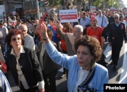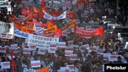 Участники многотысячного шествия, состоявшегося в Ереване в пятницу, затем направились к памятнику жертвам геноцида 1915 года «Цицернакаберд», где провели митинг.