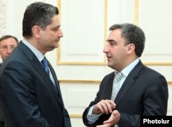 Премьер-министр Армении Тигран Саргсян (слева) принимает главу правительства Грузии Нику Гилаури, 26 января 2010 г.