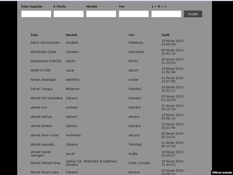 К призыву, размещенному на интернет-странице на турецком, английском и французском языках, за прошедшие несколько дней присоединились сотни людей. Под заявлением подписались многие студенты, ученые, журналисты, причем, не только из Турции, но и из других стран.