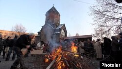 Согласно канонам Армянской Апостольской церкви, накануне праздника после вечернего богослужения совершается предпраздничное богослужение, по завершении которого происходит церемония благословления свечей. Затем от огня, взятого из церковных лампад, во дворе церквей зажигают костры как символ света Христова.