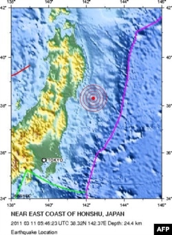 Землетрясение магнитудой 8,8 - 8,9 (сначала сообщалась цифра 7,9) произошло у северо-восточного побережья Японии. По данным Геологической службы США, всего в Японии были зафиксированы 13 эхо-толчков магнитудой более 6.