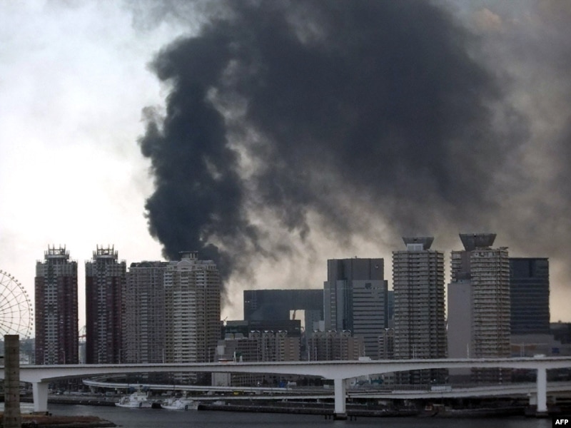 Последовавшее за толчками цунами смыло с побережья машины. В Токио горят несколько зданий, в том числе нефтеперерабатывающий завод. Огонь вспыхнул на заводе в городе Итихара. По данным японского ТВ, над территорией завода поднимаются огромные огненные клубы. Ранее сообщалось, что в Токио из-за землетрясения обрушилась крыша большого здания. По данным CNN, около 4 млн домов в Токио и прилегающих к нему районах остались без электричества.