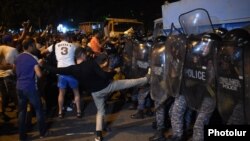 Рано утром в четверг полиция разогнала граждан, продолжавших проводить акцию протеста возле территории полка патрульно-постовой службы в Ереване, захваченной и удерживаемой членами радикальной оппозиционной группы.