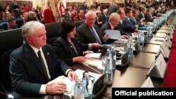«Необходимо провести интенсивные переговоры на основе предложений сопредседателей. Именно с таким восприятием я встречался шесть раз в течение года со своим азербайджанским коллегой и последний раз это было вчера, в рамках министерского совета. Встречи между министрами и активное посредничество сопредседателей позволили подготовить саммит президентов Армении и Азербайджана 16 октября 2017 году в Женеве. После 16-месячного перерыва это была первая встреча президентов, которая, в основном, прошла в положительной атмосфере, - сказал Эдвард Налбандян и продолжил: - После примерно четырехлетнего перерыва на саммите в Женеве впервые удалось принять, хоть и достаточно краткое, совместное заявление. Прежде Армения неоднократно заявляла о своей готовности присоединиться к заявлениям сопредседателей, но Азербайджан всегда отказывался выступать с совместным заявлением. Это совместное заявление отражает то, к чему долгое время призывает Армения: предпринять дополнительные шаги для ослабления напряженности на линии соприкосновения. Эти шаги были представлены в заявлениях на саммите в Вене и Санкт-Петербурге в 2016 году. Женевское заявление также акцентировало необходимость активизации переговорного процесса, и Армения всегда поддерживала это. К сожалению, сразу же после саммита Баку вновь вернулся к своим необоснованным обвинениям и милитаристской риторике».