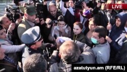 Отметим, что накануне полиция выставила плотный кордон и не пустила Пашиняна, троих других депутатов и тысячи сторонников оппозиции подойти к зданию парламента. Десятки человек, в том числе Пашинян, получили повреждения в ходе столкновений с полицией.