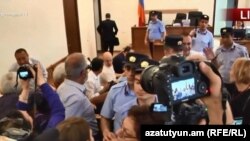 Не сумев успокоить собравшихся в зале, судья отложил заседание, объявив, что следующее слушание по делу состоится 6 июня.