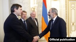 Премьер-министр Армении Никол Пашинян принял в среду сопредседателей Минской группы ОБСЕ Игоря Попова (Россия), Эндрю Шефера (США) и Стефана Висконти (Франция), а также личного представителя действующего председателя ОБСЕ Анджея Каспшика.