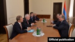 Президент Армении Армен Саркисян принял сегодня сопредседателей Минской группы ОБСЕ Игоря Попова (Россия), Эндрью Шефера (США) и Стефана Висконти (Франция) и личного представителя действующего председателя ОБСЕ Анджея Каспшика.