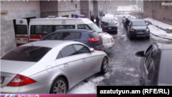 Тело бывшего начальника Службы национальной безопасности (СНБ) Армении Георгия Кутояна на машине скорой помощи было увезено с места происшествия