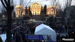Демонстранты заночевали в палатках. В данном районе находится небольшое число полицейских.