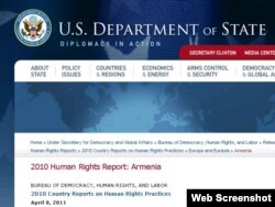 В 63-страничном разделе доклада «Права человека - 2010», который посвящен Армении, Госдепартамент отмечает, что повторяющиеся значительные нарушения в ходе выборов, в том числе и в ходе довыборов в Национальное Собрание в январе 2010 года, ограничивали право граждан на смену власти мирным путем.